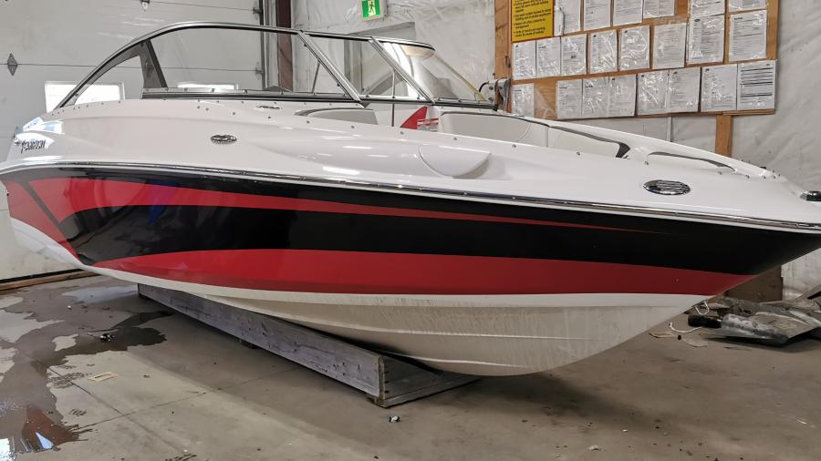 The premium trim level offers an upgraded stereo package with amp, dual battery switch, in dash depth sounder, LED lit cupholders and cockpit lighting, bow filler cushions, heavy duty rub rail insert, stainless steel pull-up cleats, tilt steering, and premium snap in marine grade flooring. The Premium Graphic edition offers everything the Premium does but with a sleek decal package and a color coordinated dash inside the boat.